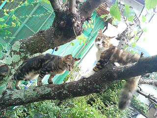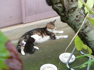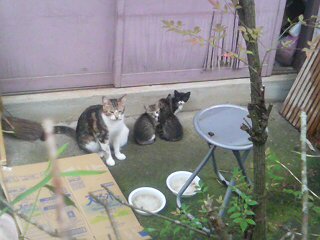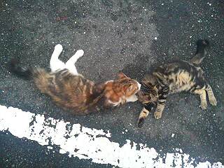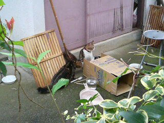 物置から出て遊んでいる赤ちゃん猫たちを目撃。