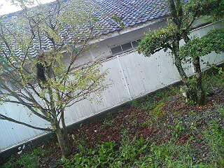 こちらに気づいた白いのが、物置に隠れました。
