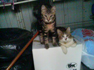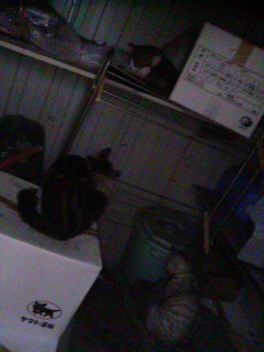 ナンコが倉庫に赤ちゃん猫2匹を連れてきていた。