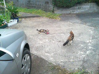 さらに詳細な猫たちの攻防を知りたい方は、「庭と猫(8月16日)」へどうぞ。