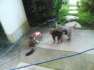 飼い猫:ルナとデルタとマイコ。