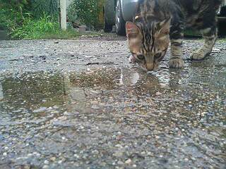 水たまりの水を飲む