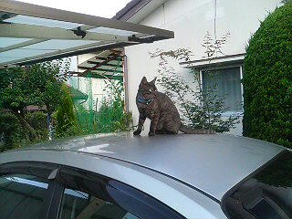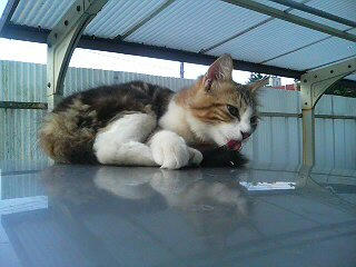 車の上でしっぽのお手入れ