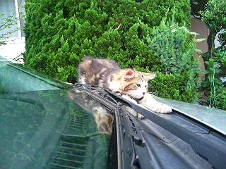 車の上でのんびり。