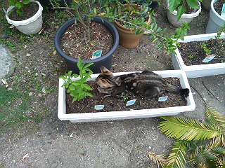 プランターも子猫の遊び場。