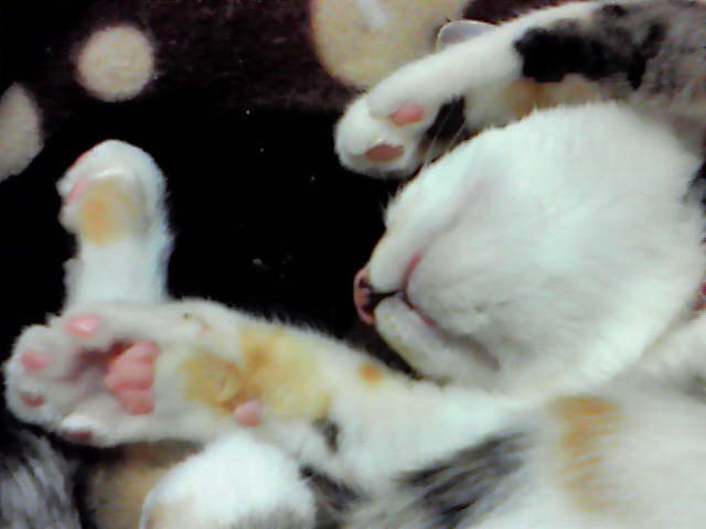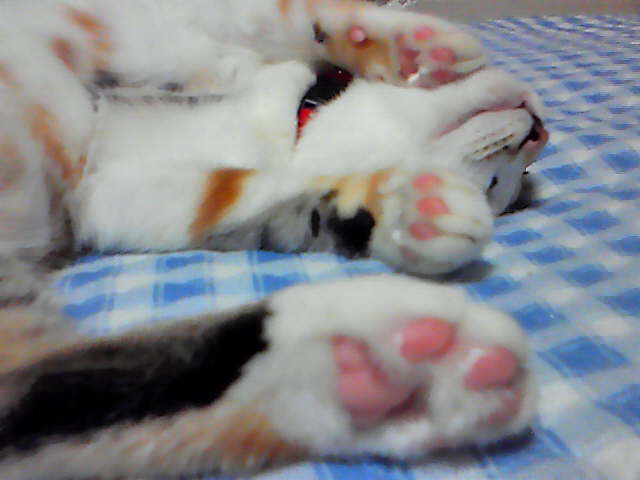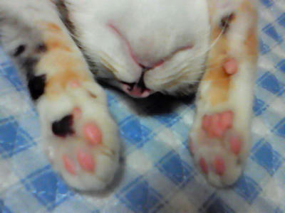 マイコの肉球はピンク多め。