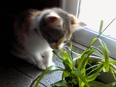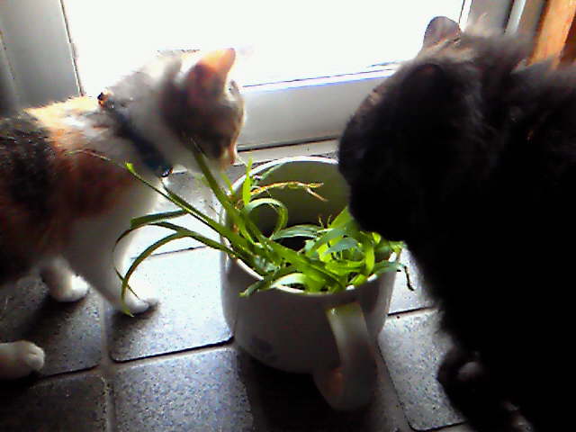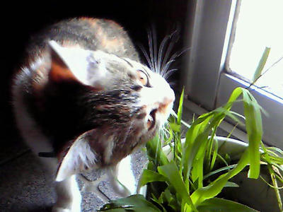 猫たちのおやつは庭から取ってきたばかりの活きのいい雑草。