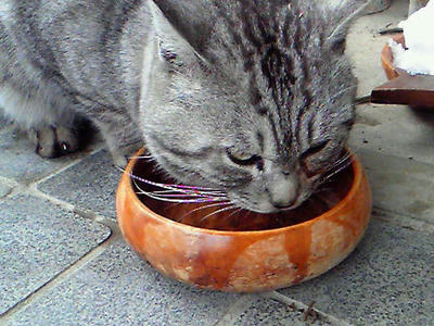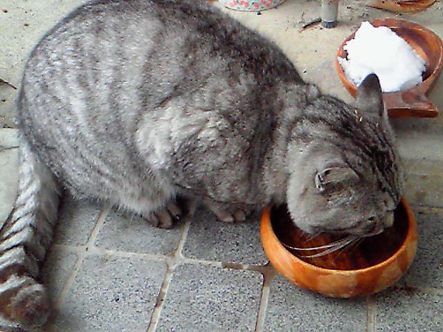 半ノラ シロはごくごくと飲む