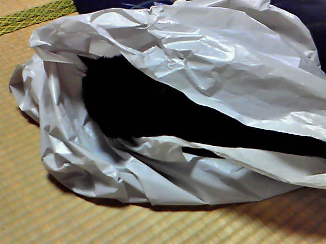 かさこそかさこそ袋のニャンコ