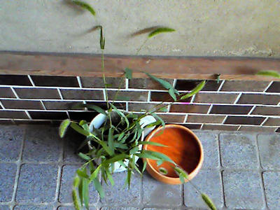 玄関に置いた猫じゃらし