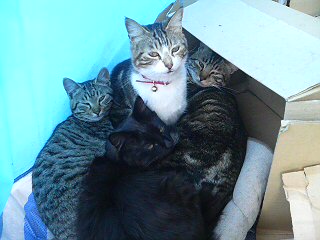 中央にナンコ、前にクロクロ、右はちびちび、左がシマシマ。