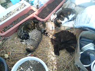 日だまりでくつろぐ猫たち