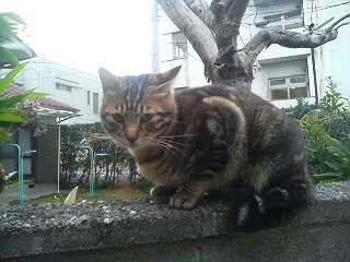 塀の上のちびちびを撮っていたら、この後に猫パンチがとんできた。