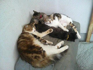 丸くなったり、長くなったりの4匹。