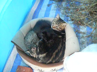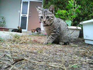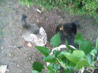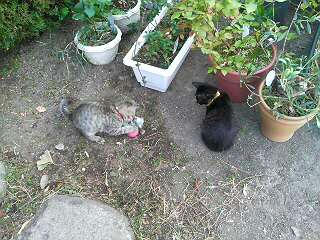 しましまはカメラ目線。クロクロはうまく撮れない。