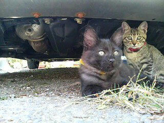 車の下のクロクロとしましま。