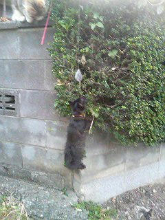 しましまとクロクロも下からよじ登ってチャレンジ。