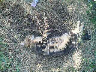 枯れ草の上は良い気持ち。