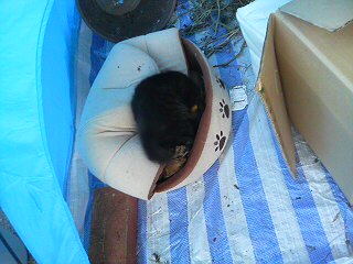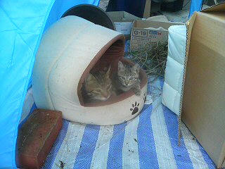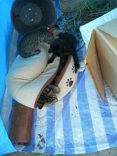 子猫はちゃっかりハウスの中へ。