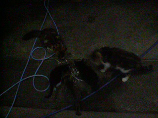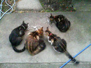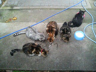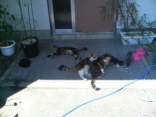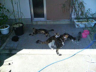 ナンコ、ミミゲ、ちびちび、子猫たち(白黒、黒、しましま)